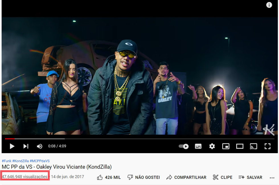 Como podemos ver na imagem ao lado, uma música feita pelos MCs tem mais poder e impacto gerando mais de 47 milhões de visualizações e atraindo toda essa atenção para os produtos da Oakley, despertando o desejo do que uma propaganda da própria marca publicada no seu canal oficial do Youtube que consegue atingir 12 mil visualizações.